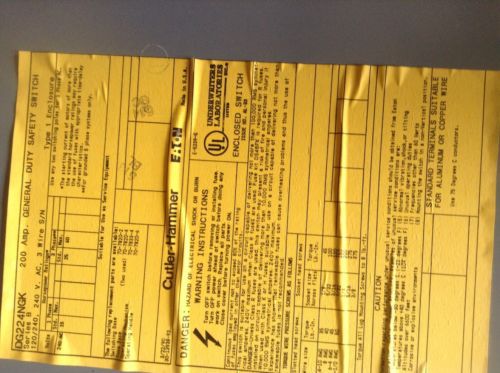 Cutler Hammer 60 Amp Safety Switch DG222NRB NIB Fusible 240 Volt OUTDOOR 3-R