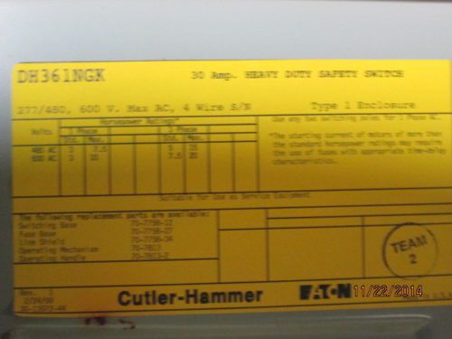 Cutler Hammer Eaton Heavy Duty Safety Switch DH361FGK 3 Phase Steam Punk