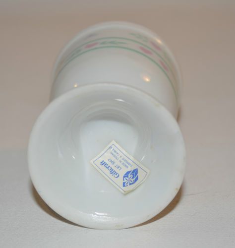 Egg Cup Pink and Yellow Flowers White Cup