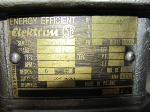 US MOTORS F016B UNIMOUNT 125 1HP 208-230/460V-AC 1750RPM 56C 3PH MOTOR D509232