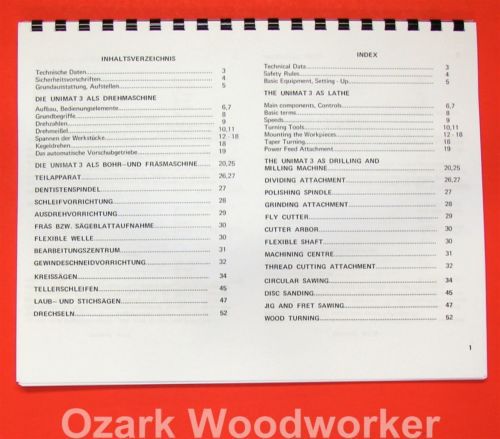 EMCO Unimat 3 Mill Metal Lathe Parts Manual 0302