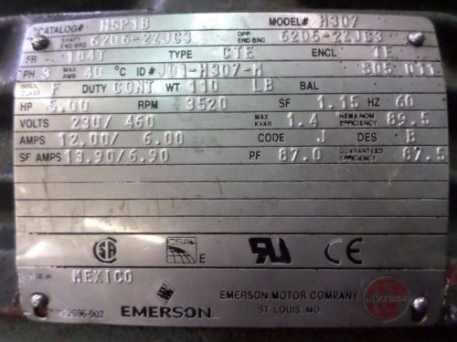 MARATHON E635 XRI SEVERE DUTY TEFC AC 5HP 460V-AC 1170RPM 215T 3PH MOTOR B238827