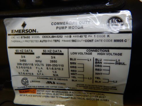 OBERDORFER PUMP W/ EMERSON R605914F MOTOR 1725RPM 3/4HP 115/230V