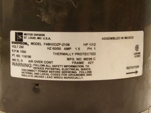 NEW EMERSON Electric MOTOR SA55JLW-5050 1/4 HP 115 V 1725 RPM Blower Project NOS