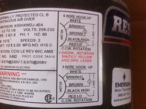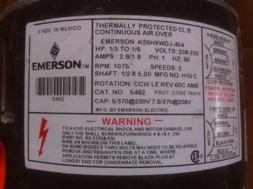 Emerson 1971 Fan Motor K55HXWMH-1251 HP 1/4 208-230 1.5 AMP 60 HZ CCWLE