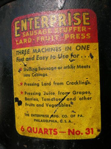 NATIONAL SPECIALTY 8 QT SAUSAGE STUFFER LARD WINE CIDER DUCK PRESS Works Great