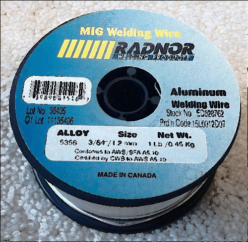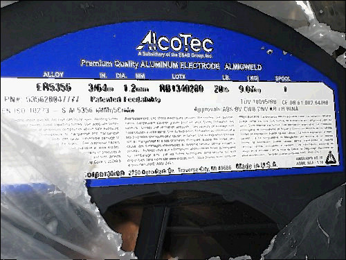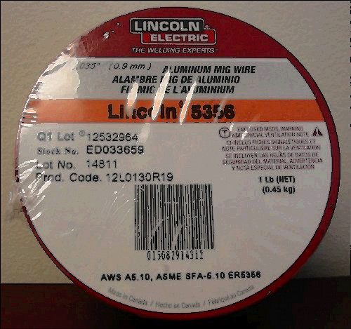 3/64" diameter, ER5356 aluminum welding electrode (wire) for MIG welding of aluminum. 1lb. spool, still in the original plastic with the wire wrapped in dissicant paper to prevent oxidization.