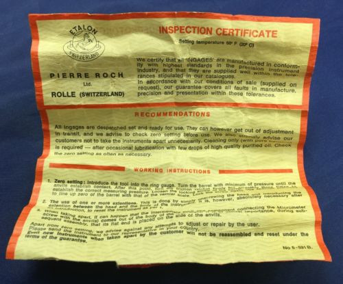 Etalon Rolle Switzerland 531B .700-.800 Internal Bore Micrometer in Wooden Case