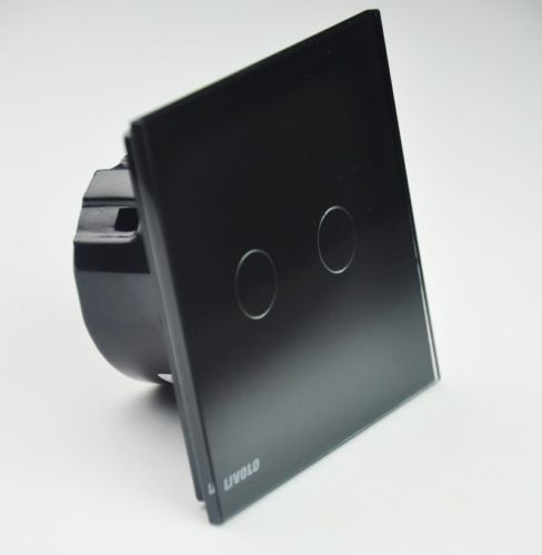 EU 2 Gang 2 Way Light Wall Embedded Touch Panel Crystal Glass Switch White/Black