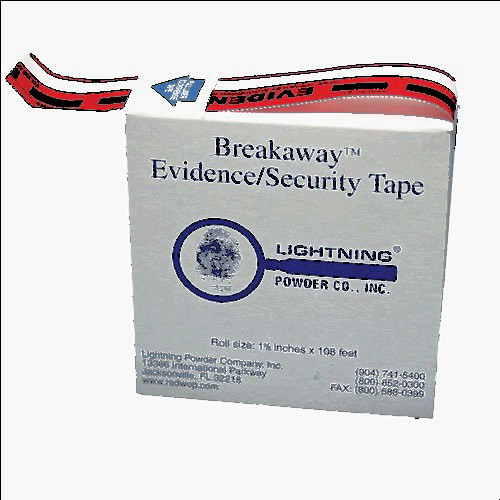 This red on white tape identifies evidence collected at the crime scene that requires specific processing such as latent prints and gunpowder residues. We have 23 brand new rolls.