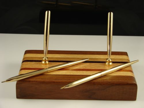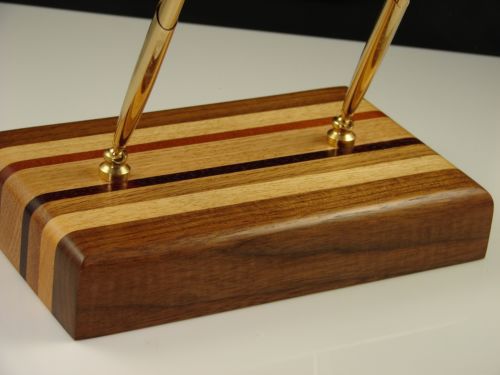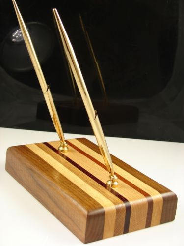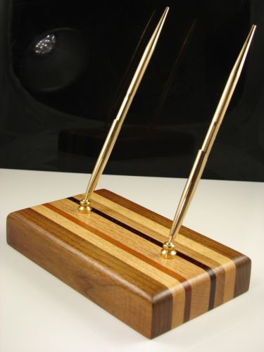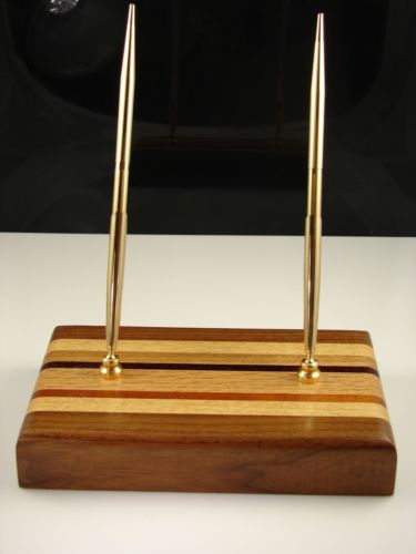 Executive Double Pen Wood Desk Set Black Walnut, Oak Padack & Mahogany