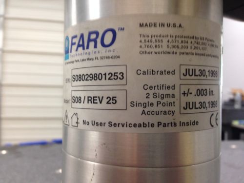 FARO Arm Platinum Portable CMM 8ft 7axis Working with Laser Scanner, Tested