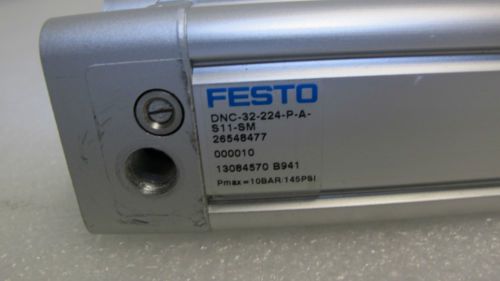 FESTO AIR CYLINDER DNC-22-224P-A-S11-SM OUT OF ORIGINAL BOX WE APPRECIATE YOU AS A CUSTOMER, AND WE THANK YOU FOR SHOPPING WITH US . WE LOOK FORWARD TO PROVIDING YOU WITH OUTSTANDING SERVICE. YOU MAY ALSO CALL US AT 408-778-2001 MONDAY – FRIDAY 8AM-5PM PST CONDITION · Most of our items listed are posted and sold either NEW, AS-IS or USED. If sold “NEW OR USED” you have 7 days from the date of arrival (DOA) to test the item or items & notify us if it is not working, failing to do so within the time frame will void any return policy that was offered. NO Warranty unless otherwise specified in description. There are no refunds or exchanges or returns for items that are sold AS IS. · It is your responsibility to verify the software or the capability of an item you purchase prior to purchasing it, to confirm it works with what you have. No refund will be given if item is working but not compatible with your equipment. In most cases this can be negotiated, but it must be done prior to your purchase. . · Please, understand that we do not have the equipment, facilities, or time to fully test every item. If we say the item works, then it was tested to the best of our ability. · All, items and contents are described to the best of our ability. We examine all items and supply all available Make/Model information. We do not have time to get detailed information beyond what is stated in the listing but will try to answer all questions in a timely manner. · Items sometimes show the serial number, due to the fact that sometimes we have multiple items for sale you might not get the one in the photo, the item will be in as good or better condition than the photo shown. POLICY · If you feel we have misrepresented an item, please contact me either by email or telephone or through ebay and give me the opportunity to work it out with you. With most items you have 7 days from the date you receive the item or items to test & notify us if it is not working. However, some items are sold “AS IS”. · We will offer to repair or replace your item with another item as close to the original description as possible within 7 business days of its return OR we will issue store credit for any item in our store for the total sale price including shipping and handling, good for 30 days. · Please allow up to 48 hours (excluding weekends and holidays) for us to respond to your email or phone message. · If you have not heard back from us within 48 hours, please check your spam and trash folders; we do try our best to stay on top of things. If you have a question about an existing eBay order or would like to know more about an item can be reached at : 408-778-2001 HOURS OF OPERATION · We are open Monday - Friday, 8-5 Pacific Time, except for closed holidays, and weekends. However, I do check my ebay account throughout the weekend. TAX · If applicable California residence must pay sale tax unless you send us a valid tax reseller number and are in that line of resale business. · Please send reseller form to: Centurian Surplus Inc. Fax 408-778-9420 SHIPPING · Buyer is responsible for shipping and handling charges unless stated in the auction. In ALL cases, the buyer pays for return shipping. · We are Not Responsible for any damages or missing shipment if insurance is not purchased. · Expedited Shipping is usually always available for an additional fee. · Shipping and handling UPS GROUND or FEDEX or USPS is who we prefer to use. Our listing usually only offer UPS Ground , however if you are wanting faster shipping, please make a note of that in the message box and I will confirm the price and send you a new invoice. You may also call for a price quote on shipping 408-778-2001 · International buyers U.S. Postage Priority Mail contact us for shipping and handling charges. · Larger items are sometimes shipped using freight companies to reduce cost · I use ebay shipping calculator and sometime their calculations are off, if you think the shipping is high, please contact me and I will do my best in getting it adjusting for you. · *** Domestic/ Residential UPS delivery’s, have a $3.00 handling fee that is calculated in the shipping *** · Orders are shipped on weekdays only. · We offer shipping discounts when you purchase more than one item, so do not be alarmed with what it comes up on ebay. PAYMENTS · We accept PayPal, Visa, MasterCard or American Express, Wire Transfers, Check, Cashiers Checks. All checks must clear prior to shipping. · Payment must paid within 72 hrs or it will be re-listed. QUESTIONS & CONTACT Our Telephone Number is: (408-778-2001) FEEDBACK Detailed Seller Ratings (DSR) Due to the new eBay rules where neutrals count as a negative towards your feedback score I ask that you please don't leave a neutral. If you have a problem with your purchase please contact me and we can resolve it. Please see my feedback score. Thank you! · These products you will see on a retail store shelf. Packages include accessories and bundled software advertised by manufacturer. They are intended for an end-user. NEW OTHER · These products you will NOT see on retail store shelf, because the packages are usually not the same. They are the same new product but may not come in the same as retail packaging. product in the original packaging but has been opened and possibly used for a short time, usually a demonstration unit. Since these items can not be advertised as Retail product, they are sold as 'Open Box'. They may not include all accessories that usually come with Retail Packaging. NEW PULLS/OEM · Products are New, usually purchased in Bulk by us. This equipment was disassembled from whole new units for reselling. Products do not come with software or instructions unless indicated. Products are inspected by us to ensure it is fully functional. USED PULLS · Products are pulled from a whole used unit for reselling; it is purchased by us in Bulk and may have minor scratches and blemishes. These products do 