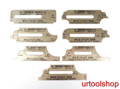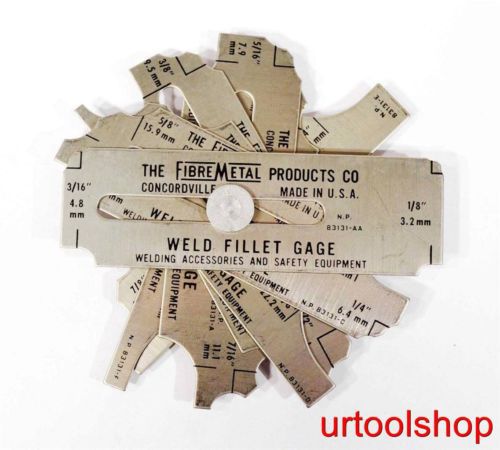 Fibre-Metal Weld Fillet Gages - weld fillet gage set 1/8"-1" 3646-65 Shipping Info: Weight: Size:FRPE QUESTIONS Please ask all questions 48 hour before the end of sale. Please note our eBay department is closed on Saturdays and Sundays. We will work to answer your questions as quickly as possible. Local pickup available at; urtoolshop.com 144 broadway hillsdale nj 07642 201-497-6767 If you plan to pick up your item up at our Hillsdale NJ shop, please, we need one day notice. Your item is in our warehouse and it will have to be pulled and moved to the shop for pick up. SALE ENDING; urtoolshop.com reserve the right to end this sale at any time as the item is for sale locally. If item is removed it was sold locally. We attempt to remove item/s posted on eBay that have sold out of our brick and mortar shop in a timely manner, if in the event an item/s is purchase on eBay and it has sold out of our store, we will cancel the eBay sale and issue a full refund to the buyer. ITEMS; All items are sold as used condition unless specified as new. Items are sold as is with no warranty. You are buying used equipment at used prices. "Condition unknown" is defined as the item may or may not run. PAYMENT; Payment must be received within 24 hours of the close of the sale or auction purchase. Seller reserve the right to cancel the transaction and relist the item if payment is not received within this time frame and will result in a Non-Pay Bidder alert filed with eBay to cover the closing fees of the auction. SHIPPING & HANDLING; Local pickup is available; Loading and shipping are the buyer’s responsibility. Buyer is responsible for all shipping costs. urtoolshop.com can transport up to 100 miles round trip for $2.00 per mile toll additional. We can crate the item/s if needed for a fee of $120. Please allow 3-5 business days after payment is received for the order to be processed then shipped. Please note our eBay department is closed on Saturdays and Sundays. We will work to answer your questions as quickly as possible. Shipping Quotes: Send us your zip code and ship to address is it commercial with or without loading dock or residential. All quotes will be for street delivery. Due to the cost of fuel, please ask for a freight quote. We do not mark up freight; we will add a handling cost to the quote. NJ Sales tax; Items delivered within the State of New Jersey are subject to a 7% sales tax. All shipments will ship to the confirmed address in the buyer's PayPal account. RETURN POLICY; Returns will not be accepted if the equipment is not in the same condition as when it was shipped to the buyer. Photo and condition of equipment will be noted on the bill of lading. Buyer is responsible for return shipping. All international shipping; As the buyer you understand if you instruct us to ship your item USPS International mail we cannot verify delivery with a signature. Once mailed our ability to track your item is very limited. We can’t be held responsible for delivery of item/s shipped using International mail. We recommend shipping with a shipping company that can verify delivery with a signature upon delivery. Feedback; If you are not happy with your item, please contact us before leaving negative feedback. We want you happy with your purchase. DISCLAIMER; Placing a bid on our auctions or making an offer, indicates you have read and agreed to all terms and conditions including all disclaimers and return policy. All sales are final, no warranty, as is condition. The buyer is responsible for all fees incurred from all buyer requested cancellations. All bids, end of auction, and sales are final and contractually binding. urtoolshop.com, LLC terms of sale: No warranty of any kind is attached to this sale, and the good(s) sold hereby, including, but not limited to, express or implied warranties. urtoolshop.com, LLC does not offer warranties of any kind. The Buyer understands that the item purchased may be in “used” condition. Buyer accepts goods “as-is” regardless of Buyer’s inspection. The Buyer understands that he/she is responsible for obtaining all copies of manufactures’ owner manuals, reading them, and exercising all safety procedures for the proper use and operation of the items purchased. If an owner’s manual is unavailable, buyer must exercise reasonable prudence and common sense safety protocols for use and operation of the item(s). Seller does not have an obligation to ensure Buyer’s safe operation of any item sold by urtoolshop.com, LLC. Buyer understands and agrees that Buyer cannot hold urtoolshop.com, LLC, liable for any liabilities related to the item(s) purchased. Buyer understands and agrees that Seller is not an agent of the manufacturer and is not liable for any damage caused by defective, faulty, or otherwise malfunctioning equipment. Buyer holds Seller harmless for damages incurred as a result of purchase, operation, or usage of the item purchased. All Sales are final. Items cannot be returned or exchanged.By purchasing an item from urtoolshop.com LLC you agree to be added to our subscription email list. If you want to unsubscribe please reply to unsubscribe on our email. MD 6-25-2014 MD 7-26-2014 MD 8-26-2014 Local pickup handling fees effective 8-1-2014: Each item selling for $5 or less a $2.00 fee will be added to the final invoice. Each item selling for $5.01 to &10.00 a $1.50 fee will be added to the final invoice. Each item selling for $10.01 or more with a weight to 50 pounds a fee of $5.00 will be added to the final invoice. Each item selling with a weight 51 to 100 pounds a fee of $15.00 will be added to the final invoice. Each item selling with a weight 101 to 250 pounds a fee of $25.00 will be added to the final invoice. Each item selling with a weight 251 and up a fee will be added to the final invoice (Please contact urtoolshop.com for this fee). MD 10-5-2014 MD 11-9-2014 Local pickup handling fees effective 8-1-2014: Each item selling for $5 or less a $2.00 fe