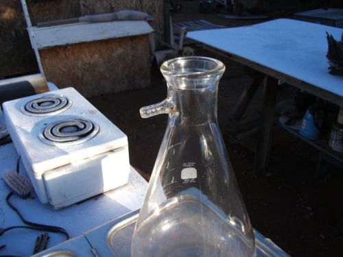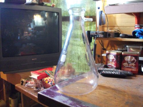 Lot of 3 Glass Erlenmeyer flasks; Pyrex 1000ml, Kimax 500ml & Pyrex 250ml