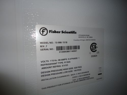 Fisher Scientific Co Isotemp Flammable Material Storage Refrigerator Freezer