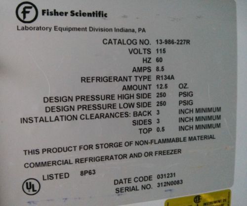 FORMA SCIENTIFIC, INC. LABORATORY FREEZER MODEL: 8181