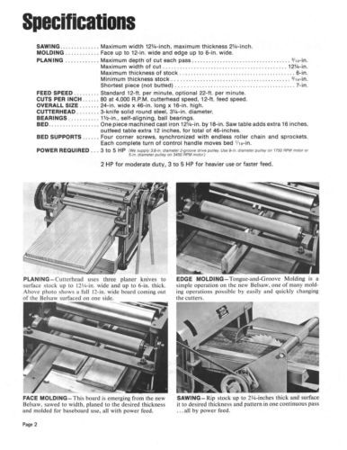 Foley Belsaw 12" Model 984/985 Planer/Molder w/Saw Attachment Manual *814