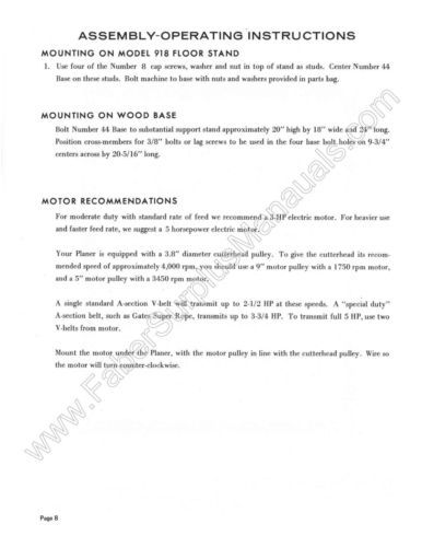 Enterprise Crescent P-18 Wood Planer Instruction and Parts List Manual *838