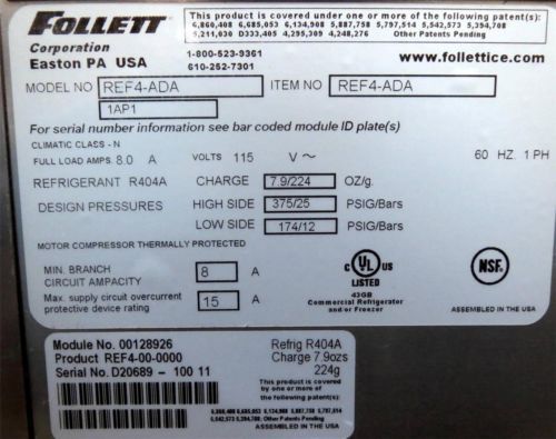 Follett REF5 NSF Restaurant Deli Undercounter Refrigerator Cooler WARRANTY