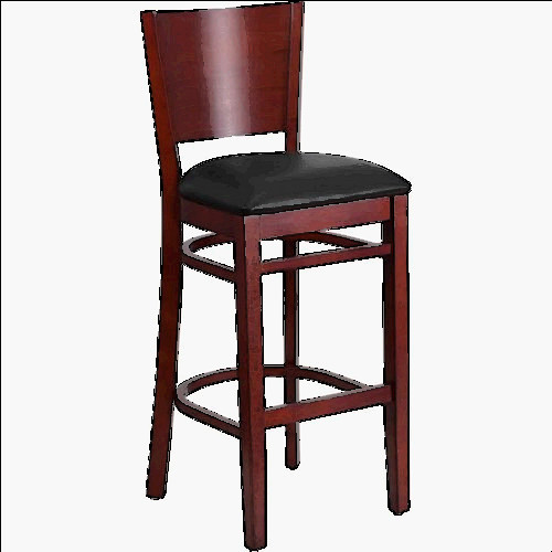 This Flash Furniture Lacey Series Solid Back Walnut Wooden Restaurant Barstool features a European beechwood seat and back which gives a fresh look to the traditional pub design. Boasting a beautiful Mahogany wood finish and a tubular foot rest, this bar stool will complement any commercial or home setting.