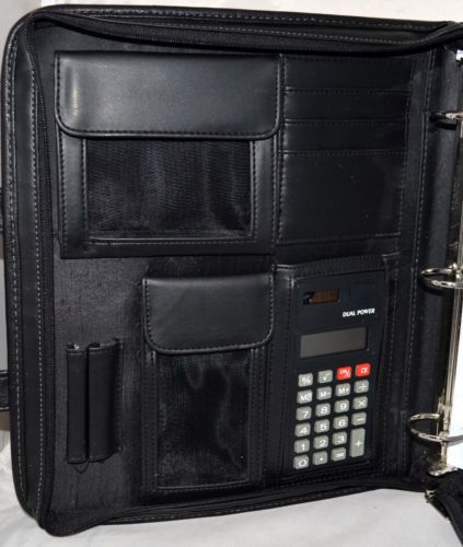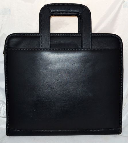 Simulated Leather 3-Ring Binder Portfolio Padfolio Zipper Organizer Black - New