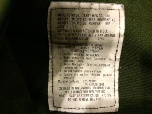 FSS Wildland Fire Fighting ARAMID Green Pants Sz 30 1/2 X 34 B
