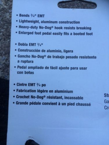 Gardner emt bender #931-3/4"thin,1/2 rigid