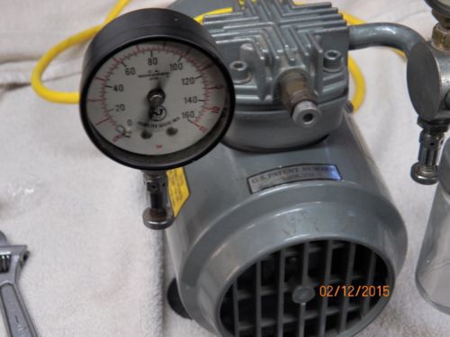 | “Some cosmetic wear on this vacuum/pressure pump. It is a used and operating pump with Hubbell Ground Fault Plug GFP5266CY 6ms equipment type installed for safety. You can see in pictures 11 and 12 while running for testing it will pull about 24 inches vacuum and pump and maintain about 80-90 psi before pressure relief valve vents.” |