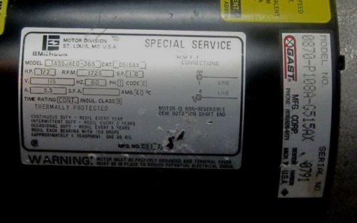 GAST 1531-107B-G557X Motor Mounted Rotary Vane Pump Vacuum Compressor Industrial