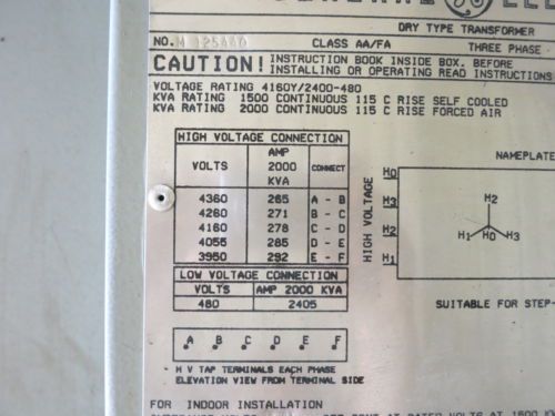 | Voltage | 4160 WYE / 2400-480 Delta Volts | ||