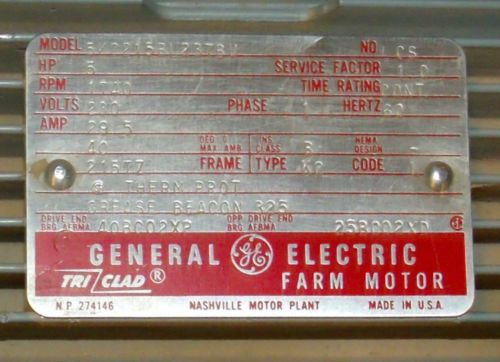 G.E 7.5HP MOTOR MOD:5KS2136E230Z RPM:1765 460V 213T:FR PH:3 USED