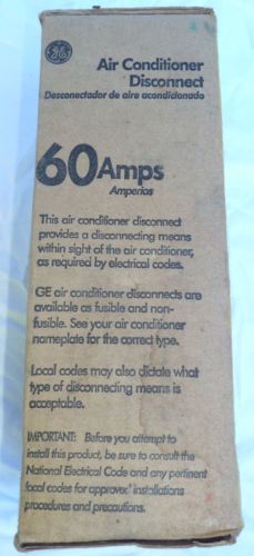 GE Air Conditioner Disconnect, 240 Volts, Non-Fusible, 60 Amps, TFN60RCP, NIB