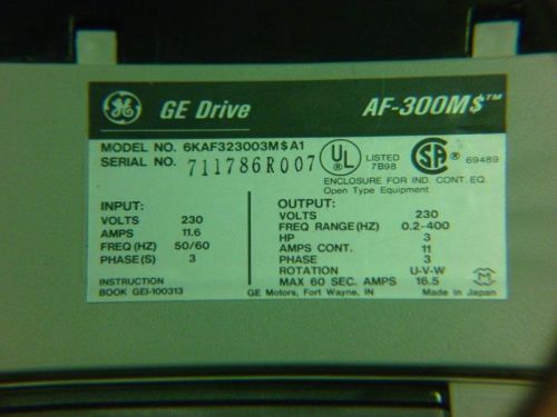 GE Fuji AF300 Drive 75 HP Part# 6VAF343075C-A2 Used