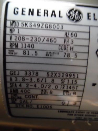 GE ENERGY SAVER MOTOR, 1 HP, V 208-230/460, RPM 1140, FR 145T, NEW