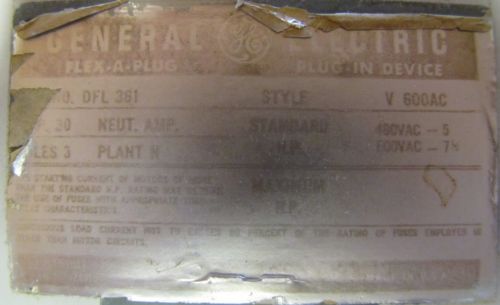 THE TRUBULL FL-361 3PH 3 W 30A 30 A AMP 575V 7 1/2 HP FUSIBLE BUSWAY PLUG SWITCH