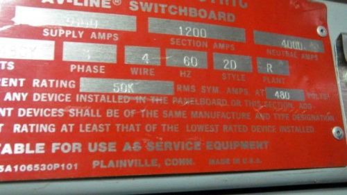 atlantic 2000 AMP 600v BREAKER PANEL PANELBOARD 1600 amp ground fault gfi