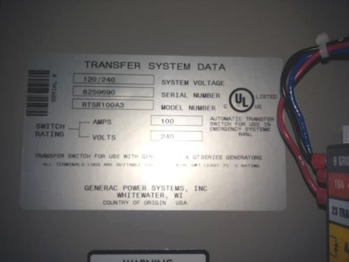 Generac RTSD100A3 100Amp Automatic Transfer Switch