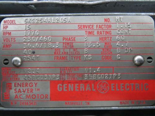 GE 5KS284SSP157D10 ENERGY SAVER XSD AC 25HP 460V 3550RPM 284TCZ MOTOR D235101