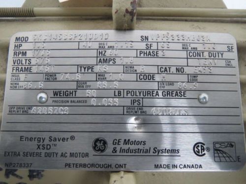 GENERAL ELECTRIC GE 5K145BL253D 1-1/2HP 1735RPM 145T 230/460V-AC MOTOR B355155