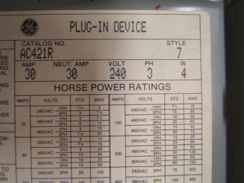 30AMP 240VAC MAX HP 7.5 fuseable commercial