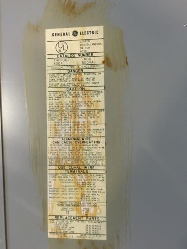 GE TDT3365 400 AMP DOUBLE THROW SAFETY SWITCH 600V 3 POLE TYPE 1 ***FAIR COND***