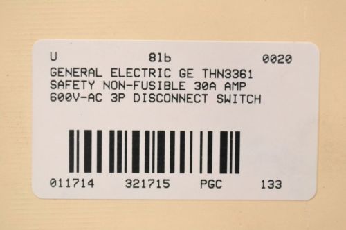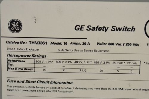 GENERAL ELECTRIC TH3221 FUSIBLE 30A AMP 40V-AC 3P DISCONNECT SWITCH B273440