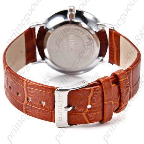 Genuine Leather Men's Date Wristwatch Free Shipping Gold Golden Dark Brown