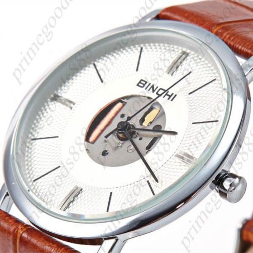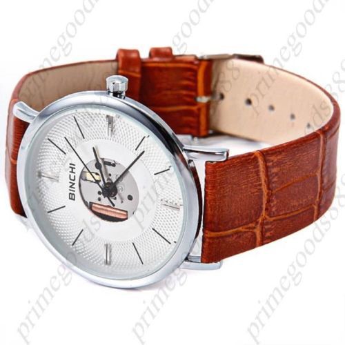Globe Genuine Leather Quartz Analog Wrist Free Shipping Men's Wristwatch Brown