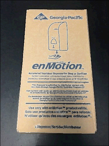 enMotion #52053 Automated Soap Dispenser This is for a brand new factory sealed unopened dispensing unit from Georgia Pacific . Dispenser color is Translucent Smoke and it comes with 4D batteries. If you have any additional questions please do not hesitate to ask..
