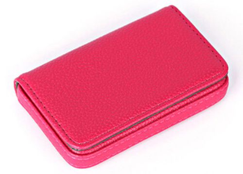Gift New Leatherette Stainless Steel Business Name Card Holder Box Hot Pink