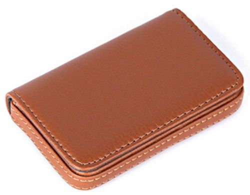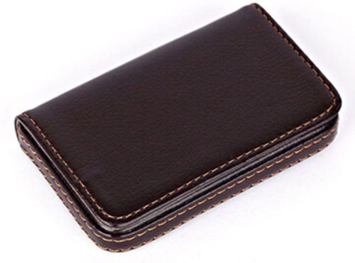 New Gift Leatherette Business Name Card Holder Wallet Case Box Brown