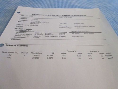Gilson Pipetman Set Micropipette P20, P200 CALIBRATED Lot 20