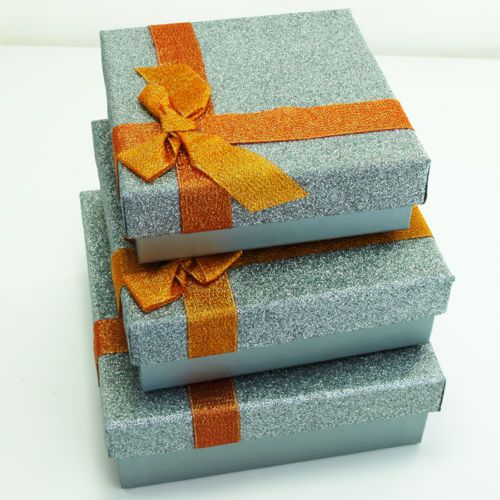 100 Silver Cotton Filled Jewelry Packaging Gift Boxes 3 1/2" x 3 1/2" x 1"